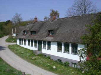 Keywords: Nedre Strandkær.jpg da Molslaboratoriet Nedre Strandkær own Stinelk Farm buildings Molslaboratoriet Thatched roofs in Denmark Gravel roads in Denmark