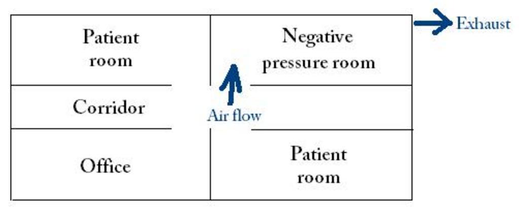 Keywords: Negative pressure room.JPG en Schematic of negative pressure room showing the inflow but not outflow of air from the corridor and other rooms into the negative pressure room used for isolation Exhaust air is removed via ventilation system own Difu Wu 2010-03-10 Health care Infectious diseases and disorders |