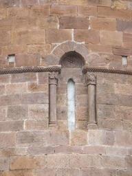 Keywords: Neila.Iglesia de San Miguel.Detalle.jpg 2006-08-24 own assumed Gafotas Church of San Miguel Neila Romanesque windows in the province of Burgos Taqueado jaqués in Castile and León