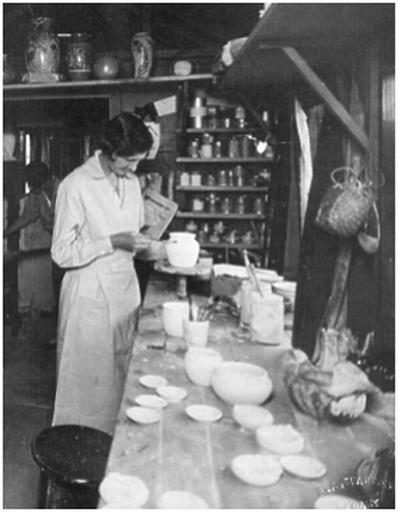 Keywords: Nell Holden.jpg en Nell Holden Australian potter in her studio approx 1930 2011-05-25 The Society of Arts and Crafts of NSW author PD-old Uploaded with UploadWizard Arts and Crafts Movement