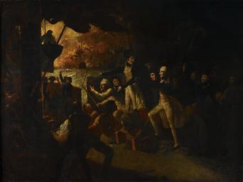 | Keywords: Nelson at the Battle of the Nile.jpg Artwork Creator Daniel Orme ca 1800 Oil on canvas cm 149 86 198 12 now lost in which it states that the figures in the exhibited version of the picture were full-size although its whereabouts are not known It was engraved and published by Orme in 1800 and again in 1805 http //74 125 95 132/search q cache R2IxA2xjycMJ www nmm ac uk/collections/nelson/viewObject cfm 3FID 3DBHC0514+BHC0514 cd 1 hl en ct clnk gl us http //collections rmg co uk/collections/objects/12006 html Royal Museums Greenwich PD-old-100 Daniel Orme Paintings in the National Maritime Museum London 1800 paintings 18th-century oil on canvas paintings in the United Kingdom 18th-century paintings of battles Horatio Nelson in art Battle of the Nile United Kingdom in history paintings |