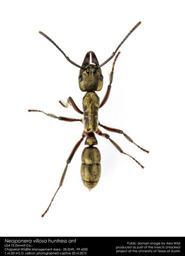 Public domain image by Alex Wild, produced as part of the Insects Unlocked project at the University of Texas at Austin. hymenoptera formicidae ponerinae workerant pachycondylavillosa neoponera antintopview |