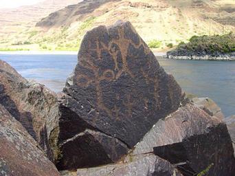 | Keywords: NEPE Petroglyph.jpg en Buffalo Eddy site - 2 Petroglyphs Outside of Asotin Washington Dense clusters of petroglyphs and pictographs in the sharp bends and eddies of the Snake River point to the longevity of the Nez Perce in this region There are hundreds of images that date back 4 500 years Nez Perce National Historical Park NEPE III-4a Nez Perce National Historical Park NEPE III-4a Nez Perce National Historical Park -4500 PD-USGov Nez Perce Nez Perce National Historical Park | ||||