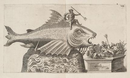 | Keywords: Neptune and the whale Antwerp 1582.jpg en Engraving of ceremonial float depicting Neptune riding on the back of a whale Used in pageants for Francois duke of Anjou 1582 and for Alessandro Farnese 1585 on their visits to the city 1582-01-01 https //www flickr com/photos/43021516 N06/8045571340/ Anonymous Published Antwerp L'imprimerie de Christophie Plantin 1582 other versions Custom license marker 2015 08 31 PD-old-100 Uploaded with UploadWizard 1582 engravings Engravings from Belgium Whales in art |