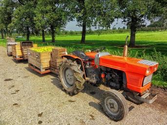 Keywords: netherlands fruit harvest farm rural tractor pallets nature outside