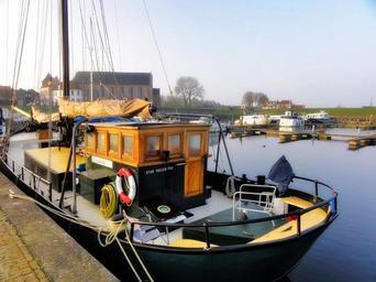 Keywords: netherlands harbor bay trees boats ships spring summer nature outside water sky clouds