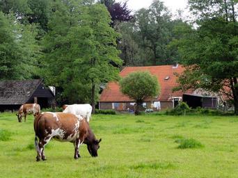 Keywords: netherlands landscape scenic cattle pasture field meadow trees sky clouds house home farm rural rustic nature outside country countryside summer spring