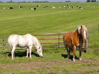 Keywords: netherlands landscape scenic horses cattle farm rural fields fence nature outside country countryside summer spring equine