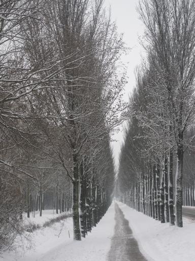 Keywords: netherlands landscape scenic winter snow trees path trail lane road sky nature outside