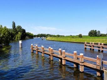 Keywords: netherlands sky clouds lake river water reflections trees pier dock nature outside summer spring country countryside