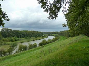Keywords: netherlands sky clouds scenic river water forest trees woods grass plants hill nature outside country countryside summer spring