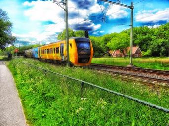 Keywords: netherlands train transportation railroad railway tracks nature outside summer spring sky clouds hdr