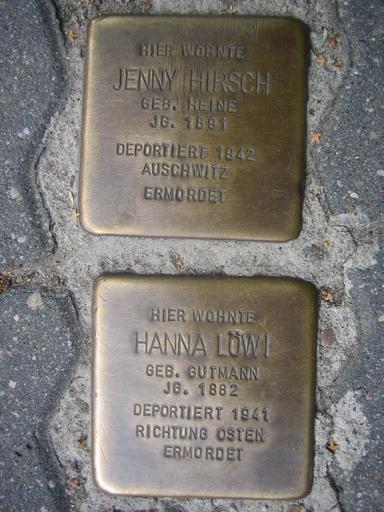| Keywords: Neubrandenburg Friedrich-Engels-Ring Stolpersteine.JPG Stolpersteine Jenny Hirsch und Hanna Löwi Friedrich-Engels-Ring 29 Neubrandenburg Mecklenburg-Vorpommern own 2012-10-20 LasseG 53 33 29 86 N 13 15 15 92 E Stolpersteine in Neubrandenburg Friedrich-Engels-Ring Cc-zero |