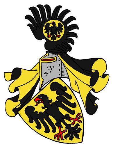 | Keywords: Neuenahr-Wappen.png Stammwappen der Grafen von Neuenahr Graf Otto von Neuenahr 1231 In Gold ein schwarzer Adler mit roter Bewehrung Helmzier ein schwarzer Flug belegt mit einer runden Scheibe auf welcher der Adler wiederholt wird oder ein wachsender schwarzer Adler Helmdecke schwarz-golden 1221 - 1358 herrschten die Grafen von Neuenahr die um 1220 die bereits 1372 zerstörte Burg Neuenahr erbauten 1358 - 1425 die Grafen von Neuenahr-Saffenberg 1425 - 1545 die Grafen von Neuenahr-Saffenberg-Virneburg 1545 fiel nach dem Aussterben der Grafen von Virneburg die Grafschaft als erledigtes Lehen zurück an den direkten Lehnsherrn den Herzog von Jülich der 1545 - 1609 Graf von Neuenahr ist Im Vertrag von Xanten 1614 fällt die Grafschaft Neuenahr an das Herzogtum Pfalz-Neuburg 1685-1797 gehörte sie zur Kurpfalz später kam sie an Preußen Blasonierung und alte Wappenabbildungen †’ http //www dr-bernhard-peter de/Heraldik/Galerien/galerie773 htm ; http //www dr-bernhard-peter de/Heraldik/wappenrolle26 htm century 13 Wappengrafik erstellt von LeoDavid Cc-zero Wappenrecht Coats of arms of families of Germany - N Or an eagle sable beaked langued and membered gules |