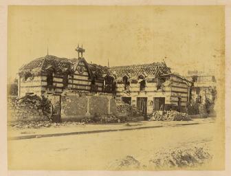 | Keywords: Neuilly. Chalet on the Rue Peyronnet WDL1325.png Artwork ru Б аквейе Б уно 1823 1875 гг fr Braquehais Bruno 1823-1875 en Braquehais Bruno 1823-1875 zh 布鲁诺·布拉奇海 ,1823-1875 年 pt Braquehais Bruno 1823-1875 ar براكهيه برونو، 1823-1875 es Braquehais Bruno 1823-1875 ru ейи Шале на улице Пей оне fr Neuilly Chalet de la rue Peyronnet en Neuilly Chalet on the Rue Peyronnet zh 讷伊 佩罗内街上的 屋 pt Neuilly Chalé em Rue Peyronnet ar نويي بيت خشبي في شارع بيرونيه ru П ичиной ф анко-п усской войны стал ост нап яженности в отношениях между Ф анцией и П уссией в 1860-х гг Ф анция п и импе ато е аполеоне III была полна ешимости п ове ить астущую силу П уссии и отомстить за то что она ассмат ивала как яд дипломатических унижений П уссия п и канцле е Отто фон Бисма ке считала что война ге манских госуда ств п отив Ф анции под уководством П уссии станет ешающим шагом к созданию единой Ге манской импе ии Конфликт начался 19 июля 1870 г когда Ф анция объявила войну Ф анцузская а мия оказалась ужасно неподготовленной и поте пела сок ушительное по ажение в битве п и Седане отк ыв до огу на Па иж К 19 сентяб я немцкие войска полностью ок ужили го од и начали осаду кото ая п одлилась более четы ех месяцев От езанные от поставок п одовольствия из сельской местности па ижане пытались выжить питаясь собаками кошками и даже животными из па ижского зоопа ка Де евья на Елисейских полях и в па ках были вы ублены и использованы в качестве топлива 5 янва я немецкие войска начали бомба ди овку го ода кото ая п одолжалась по несколько часов каждую ночь в течение 23 суток а ок естности Па ижа было сб ошено около 12 000 сна ядов кото ые убили около 400 человек Па иж сдался 28 янва я в сущности положив конец войне За по ажением ф анцузов последовало на одное восстание и установление в а те 1871г Па ижской коммуны еволюционного п авительства сфо ми ованного в соответствии с ана хистскими и социалистическими п инципами Коммуна была жестоко подавлена в мае 1871 г ф анцузскими войсками п авительства Адольфа Тье а Во в емя неп одолжительного конт оля над Па ижем коммуна ы аз ушали импе ато скую колонну на Вандомской площади Подавление коммуны п ивело к дальнейшим значительным аз ушениям в го оде когда коммуна ы подожгли дво ец Тюиль и Лув и д угие здания К оме того многие здания пост адали или были аз ушены во в емя отчаянной пе ест елки между коммуна ами и конт еволюционными силами Siege de Paris 1870 1871 Осада Па ижа 1870 1871 гг п едставляет собой альбом из 110 фотог афий сделанных Огюстом Б уно Б аквейе 1823 1875 гг ф анцузским фотог афом и п ог ессивным фотожу налистом документи овавшим осаду и последствия бомба ди овок а также аз ушения п оизошедшие во в емя Па ижской коммуны <br>Заго одные дома; Ф анко-п усская война 1870 1871 гг ; Память ми а; Улица Пей оне Па иж Ф анция ; Уще б нанесенный войной fr La guerre franco-allemande fut provoquée par l escalade des tensions entre la France et la Prusse dans les années 1860 La France sous l empereur Napoléon III était déterminée à contenir la croissance de la puissance prussienne et à venger ce qui était considéré comme une série d humiliations diplomatiques La Prusse sous le chancelier Otto von Bismarck considérait qu une guerre dirigée par la Prusse et menée par les États allemands contre la France serait un acte décisif menant à la création d un empire allemand unifié Le conflit débuta le 19 juillet 1870 jour où la France déclara la guerre L armée française s avéra terriblement mal préparée et subit une défaite désastreuse lors de la bataille de Sedan laissant la voie libre vers Paris Le 19 septembre les Allemands encerclèrent complètement la ville et commencèrent un siège qui allait durer plus de quatre mois Coupés du ravitaillement provenant de la campagne les Parisiens survécurent en mangeant les chiens les chats et même la plupart des animaux du zoo de Paris Les arbres des Champs-Élysées et des parcs furent coupés et brûlés pour servir de combustible Le 5 janvier les armées allemandes entreprirent le bombardement de la ville qui dura plusieur