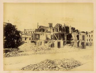 | Keywords: Neuilly. Rue du Roule. Rubble in the Street WDL1326.png Artwork ru Б аквейе Б уно 1823 1875 гг fr Braquehais Bruno 1823-1875 en Braquehais Bruno 1823-1875 zh 布鲁诺·布拉奇海 ,1823-1875 年 pt Braquehais Bruno 1823-1875 ar براكهيه برونو، 1823-1875 es Braquehais Bruno 1823-1875 ru ейи Улица дю Руль Булыжники на улице fr Neuilly Rue du Roule Décombres dans la rue en Neuilly Rue du Roule Rubble in the Street zh 讷伊 柔乐街头 被摧毁的街道 pt Neuilly Rue du Roule Escombros na rua ar نويي شارع رول حطام في الشارع ru П ичиной ф анко-п усской войны стал ост нап яженности в отношениях между Ф анцией и П уссией в 1860-х гг Ф анция п и импе ато е аполеоне III была полна ешимости п ове ить астущую силу П уссии и отомстить за то что она ассмат ивала как яд дипломатических унижений П уссия п и канцле е Отто фон Бисма ке считала что война ге манских госуда ств п отив Ф анции под уководством П уссии станет ешающим шагом к созданию единой Ге манской импе ии Конфликт начался 19 июля 1870 г когда Ф анция объявила войну Ф анцузская а мия оказалась ужасно неподготовленной и поте пела сок ушительное по ажение в битве п и Седане отк ыв до огу на Па иж К 19 сентяб я немцкие войска полностью ок ужили го од и начали осаду кото ая п одлилась более четы ех месяцев От езанные от поставок п одовольствия из сельской местности па ижане пытались выжить питаясь собаками кошками и даже животными из па ижского зоопа ка Де евья на Елисейских полях и в па ках были вы ублены и использованы в качестве топлива 5 янва я немецкие войска начали бомба ди овку го ода кото ая п одолжалась по несколько часов каждую ночь в течение 23 суток а ок естности Па ижа было сб ошено около 12 000 сна ядов кото ые убили около 400 человек Па иж сдался 28 янва я в сущности положив конец войне За по ажением ф анцузов последовало на одное восстание и установление в а те 1871г Па ижской коммуны еволюционного п авительства сфо ми ованного в соответствии с ана хистскими и социалистическими п инципами Коммуна была жестоко подавлена в мае 1871 г ф анцузскими войсками п авительства Адольфа Тье а Во в емя неп одолжительного конт оля над Па ижем коммуна ы аз ушали импе ато скую колонну на Вандомской площади Подавление коммуны п ивело к дальнейшим значительным аз ушениям в го оде когда коммуна ы подожгли дво ец Тюиль и Лув и д угие здания К оме того многие здания пост адали или были аз ушены во в емя отчаянной пе ест елки между коммуна ами и конт еволюционными силами Siege de Paris 1870 1871 Осада Па ижа 1870 1871 гг п едставляет собой альбом из 110 фотог афий сделанных Огюстом Б уно Б аквейе 1823 1875 гг ф анцузским фотог афом и п ог ессивным фотожу налистом документи овавшим осаду и последствия бомба ди овок а также аз ушения п оизошедшие во в емя Па ижской коммуны <br>Ф анко-п усская война 1870 1871 гг ; Память ми а; Го одские сцены; Уще б нанесенный войной fr La guerre franco-allemande fut provoquée par l escalade des tensions entre la France et la Prusse dans les années 1860 La France sous l empereur Napoléon III était déterminée à contenir la croissance de la puissance prussienne et à venger ce qui était considéré comme une série d humiliations diplomatiques La Prusse sous le chancelier Otto von Bismarck considérait qu une guerre dirigée par la Prusse et menée par les États allemands contre la France serait un acte décisif menant à la création d un empire allemand unifié Le conflit débuta le 19 juillet 1870 jour où la France déclara la guerre L armée française s avéra terriblement mal préparée et subit une défaite désastreuse lors de la bataille de Sedan laissant la voie libre vers Paris Le 19 septembre les Allemands encerclèrent complètement la ville et commencèrent un siège qui allait durer plus de quatre mois Coupés du ravitaillement provenant de la campagne les Parisiens survécurent en mangeant les chiens les chats et même la plupart des animaux du zoo de Paris Les arbres des Champs-Élysées et des parcs furent coupés et brûlés pour servir de combustible Le 5 janvier les armées allemandes entreprirent le bombardement de la ville qui dura plu
