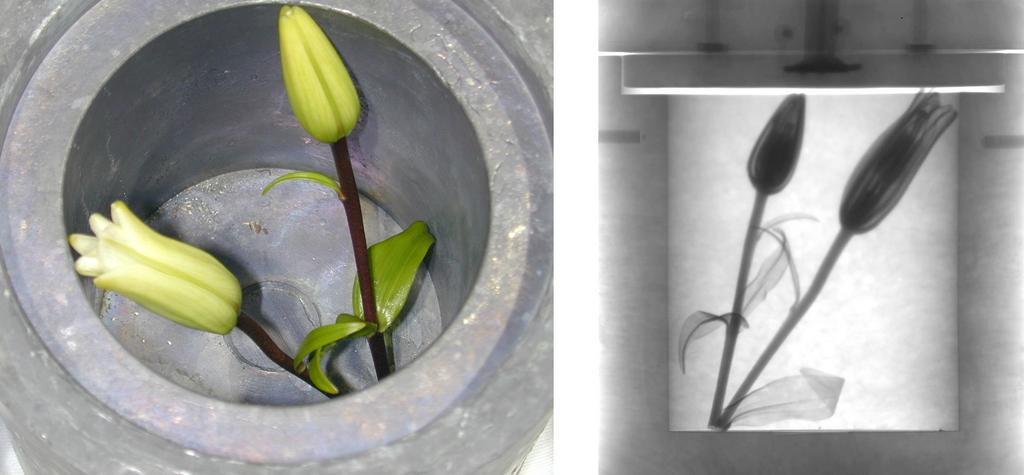 | Keywords: Neutron Image of Asiatic Lilies Inside a Lead Cask (5888010179).jpg Asiatic lilies inside a lead cask A digital camera took an overhead picture of the open cask left and a neutron imaging system photographed the lilies through the lead walls of the cask right This image demonstrates the power of neutrons to easily pass through otherwise impenetrable materials such as the lead cask and yet have enough sensitivity to reveal fine details such as the leaf veins of the Asiatic lilies The neutron image has been sharpened slightly to improve black-and-white contrast for viewing on the web The imaging capabilities at the NIST Center for Neutron Research are used for many applications such as studying the inner workings of fuel cells Credit Daniel Hussey/NIST Disclaimer Any mention of commercial products within NIST web pages is for information only; it does not imply recommendation or endorsement by NIST Use of NIST Information These World Wide Web pages are provided as a public service by the National Institute of Standards and Technology NIST With the exception of material marked as copyrighted information presented on these pages is considered public information and may be distributed or copied Use of appropriate byline/photo/image credits is requested https //www flickr com/photos/usnistgov/5888010179/ Neutron Image of Asiatic Lilies Inside a Lead Cask 2007-06-16 09 29 https //www flickr com/people/63059536 N06 National Institute of Standards and Technology PD-USGov National Institute of Standards and Technology https //flickr com/photos/63059536 N06/5888010179 2016-09-07 02 31 30 United States Government Work Uncategorized 2016 September 9 |