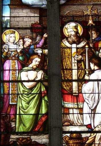 | Keywords: NeuvyLeRoiBaptemeClovis.jpg Vitrail de l'église saint Vincent de Neuvy le roi http //his nicolas free fr/ Histoire de France Middle ages Author PD-old PD-old Église Saint-Vincent de Neuvy-le-Roi Stained glass windows in Indre-et-Loire The Baptism of Clovis I on stained glass windows |