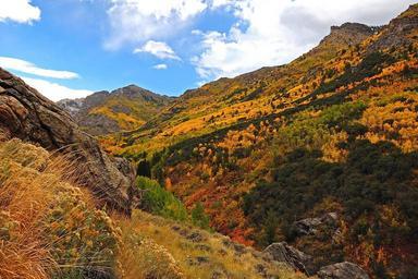 Keywords: nevada mountains ravine valley forest trees autumn fall sky clouds colorful foliage plants grass country countryside beautiful nature outside