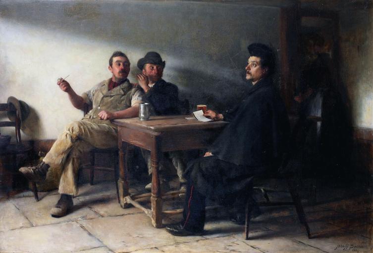 | Keywords: Never more to hear that silent voice, Her smile to meet no more, by John Henry Frederick Bacon.jpg en Never more to hear that silent voice Her smile to meet no more oil on canvas 66 x 96cm signed b r John H Bacon / 1889 1889 http //www bonhams com/auctions/23581/lot/22/ Bonhams Creator John Henry Frederick Bacon other versions Custom license marker 2016 09 10 PD-old-100 John Henry Frederick Bacon 1889 | ||||