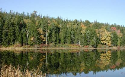 Keywords: new england pine trees nature autumn water lake reflection tranquil calm woods fall trees peaceful