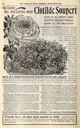 | Keywords: New floral guide (16863176505).jpg 26 <br> The Conard Jones Company West Grove Pa <br> The Lovely <br> TEA POLYANTHA ROSE <br> ClotildcSoupert <br> QUEEN OF ALL BEDDING ROSES <br> POSITIVELY BLIZZARD PROOF <br> BLOOMS ALL THE TIME e <br> CLOTILDE SOUPEKT This grand rose con- <br> tinues to be one of the best and most beautiful <br> varieties for bedding ever introduced ; the flow- <br> ers are borne in large clusters all over the bush <br> they are large perfectly full and double and <br> most deliciously sweet- <br> color beautiful creamy <br> white splendidly tinged <br> with amber <br> deepening at <br> centre to a <br> clear bright <br> pink and <br> sometimes <br> both red and <br> white roses <br> are borne on <br> the same <br> plant The <br> bush is a vig- <br> orous grower <br> and begins to <br> bloom a 1- <br> most as soon <br> a s planted <br> and contin- <br> Our C J Soupert Set-8 lovely roses for trial bed-65c postpaid loaded <br> ful buds and flowers during the whole season It is impossible to praise this lovely rose too highly; it should <br> be included in every order Price 10 cts ; larger size 15 cts postpaid Two-year size 30 cts by express <br> THE PINK SOUPERT A lovely new ever-blooming rose <br> as beautiful as Clotilde Soupert but deeper color ; medium <br> size flowers perfectly full and double very sweet blooms <br> all the time ; color fine rose pink but variable the same <br> bush frequently bearing flowers of different colors at the <br> same time ; grows low and bushy and is quite hardy 10 <br> cts each ; larger size 15 cts Two-year size 30 cts by <br> express <br> NEW YELLOW SOUPERT MOSELLA Makes a neat <br> handsome bush loaded with flowers all the time ; never <br> out of bloom during the growing season ; medium size <br> finely formed flowers borne in large clusters and quite <br> fragrant ; color; pretty buff or peachy yellow ; fine for <br> bedding and house culture 10 cts each ; larger size 15 <br> cts postpaid Two-year size 30 cts by express <br> CORINNA A new English Rose of great promise Beautiful <br> flesh color shaded with rose and tinted with coppery gold <br> The flowers are large size excellent shape and very freely <br> produced all through the season Can be depended on <br> for an abundant crop of large double roses during the <br> entire summer 15 cts each ; larger size 20 cts postpaid <br> Two-year size 35 cts by express <br> MARIE LAMBERT The flowers are extra large very <br> double and full and deliciously Tea-scented ; color pale <br> lemon-yellow passing to rich creamy-\t hite elegantly <br> shaded with soft rosy blush; an enormous bloomer covered <br> with flowers the whole season Price 10 cts each ; larger <br> size 15 cts postpaid Two-year size 30 cts by express <br> MADAME C P STRASSHEIM New Tea Rose A good <br> hardy grower and very free bloomer ; excellent for bed- <br> diiig and borders ; fine sulphur changing to orange and <br> buff; a very lovely variety 15 cts ; large size 20 cts <br> COQUETTE DE LYON Lovely canary yellow immense <br> bloomer elegant for bedding ; one of the best bright yel- <br> low roses blooms quickly and profusely the whole season <br> Price 10 cts each ; larger size 15 cts postpaid Two-year <br> size 30 cts by express <br> NEV TEA ROSE MARION DINGEE Deep brilliant <br> crimson one of the darkest and richest colored Ever- <br> blooming Roses we have ; beautiful cupshaped flowers <br> quite full and fragrant and borne in great profusion all <br> through the growing season ; excellent for garden plant- <br> ing 15 cts each ; larger size 20 ct Two-year size 30 <br> cts by express <br> Set of 8 for 65 cts ; lar§ er size 8 for 90 cts postpaid Two year size 8 for 1 95 express <br> 17 Lovely Roses all colors nicely assorted for 1 00 <br> 1 New Palo Alto <br> page 15 1 Meteor <br> page 11 2 hardy Ramblers 1 Yellow 1 White 13 choice Ever-bloomers different colors all strong <br> well-rooted plants ready for immediate use often some in hud 17 in all only 1 00 postpaid Ask <br> for collection M 42484188 134532 67120 Page 26 Text http //www biodiversitylibrary org/page/42484188 1901 10 1111/j 1469-7998 1865 tb02381 x Conard Jones Co West Grove Pa ; Henry G Gilbert Nursery and Seed Trade Catalog Collection Biodiversity Heritage Library New floral guide 1901 Garden Stories Bulbs Plants Catalogs Nursery stock Plants Ornamental Roses Seeds U S Department of Agriculture National Agricultural Library bhl page 42484188 dc identifier http //biodiversitylibrary org/page/42484188 Conard Jones Co Flowers West Grove PA Conard Jones Co bhlGardenStories BHLinbloom bulbs plants plants ornamental u s department of agriculture national agricultural library west grove pa conard jones co bhlgardenstories bhlinbloom Information field Flickr posted date ISOdate 2015-03-19 Check categories 2015 August 23 CC-BY-2 0 BioDivLibrary https //flickr com/photos/61021753 N02/16863176505 2015-08-23 23 52 37 cc-by-2 0 PD-old-70-1923 New floral guide 1901 Photos uploaded from Flickr by Fæ using a script |