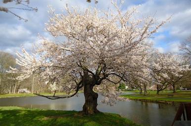 Keywords: new jersey spring nature outside flowering flowers plants park beautiful sky clouds pond lake water