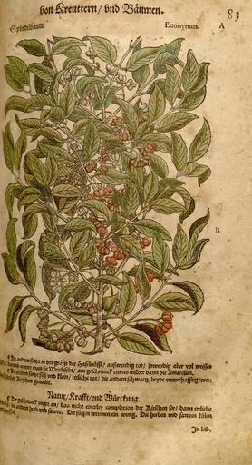 | Keywords: New Kreüterbuch (8341603865).jpg ßo« Rmttm/ m <br> pin cl itttttt <br> / <br> Euonymusl <br> A <br> <br> B <br> fSi <br> – « f'-rtliubtmbjr große <br> L <br> '»» tnigwrtt» Kern/ cttltrJJr f/ s ' <br> CttVttß <br> mm gcS ' ' ' ' ««Ucmfc w rg/bcyte wwer 4 f«3/ <br> « <br> S Sfföi <br> amr/j raffr/üttb mutimg <br> 'ogct jjt/ <br> V wj«« cr öiefS crt »criwnew wmi9 Die herbat wt <br> berbert <br> faxe <br> <br> ica <br> \ <br> + 9500232 37059 9009 Page 83 Text http //www biodiversitylibrary org/page/9500232 1563 10 5962/bhl title 9009 Georgen Melantrich von Auentin ; Handsch Georg H ; Mattioli Pietro Andrea; Vincenti Valgriss Buchdruckers Biodiversity Heritage Library New Kreüterbuch Botany Medical De materia medica Dioscorides Pedanius Early works to 1800 Materia medica of Anazarbos Pharmacognosy Missouri Botanical Garden Peter H Raven Library bhl page 9500232 dc identifier http //biodiversitylibrary org/page/9500232 botany medical dioscorides pedanius of anazarbos missouri botanical garden peter h raven library Information field Flickr posted date ISOdate 2013-01-03 Check categories 2015 August 29 CC-BY-2 0 BioDivLibrary https //flickr com/photos/61021753 N02/8341603865 2015-08-29 02 57 07 cc-by-2 0 PD-old-70-1923 New Kreüterbuch 1563 Photos uploaded from Flickr by Fæ using a script |