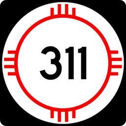 Keywords: New Mexico 311.svg 750 mm by 750 mm 30 in by 30 in New Mexico state road shield made to the specifications of the http //nmshtd state nm us/upload/images/Plans_Specs_Estimates/Division 20700/701/701 pdf PS E Standard Drawings which specifies a 30 by 30 shield for 3-digit roads Pictures of actual shields were also used for reference Uses the Roadgeek 2005 fonts United States law does not permit the copyrighting of typeface designs and the fonts are meant to be copies of a U S Government-produced work anyway self-created using Inkscape and Image New Mexico 3di svg 2008-03-26 Mr Matté Own work all rights released Public domain New Mexico State Road shields Shields created by User Mr Matté