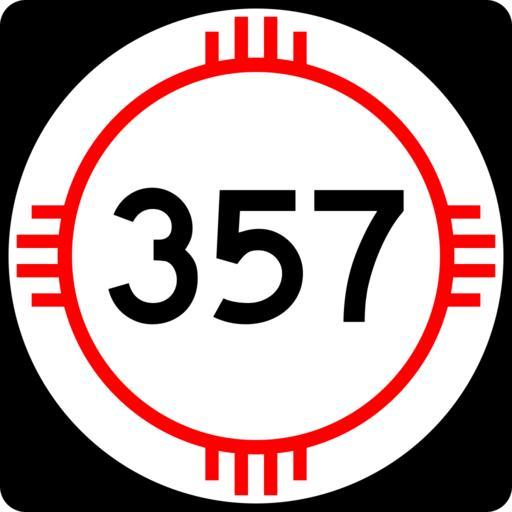 | Keywords: New Mexico 357.svg 750 mm by 750 mm 30 in by 30 in New Mexico state road shield made to the specifications of the http //nmshtd state nm us/upload/images/Plans_Specs_Estimates/Division 20700/701/701 pdf PS E Standard Drawings which specifies a 30 by 30 shield for 3-digit roads Pictures of actual shields were also used for reference Uses the Roadgeek 2005 fonts United States law does not permit the copyrighting of typeface designs and the fonts are meant to be copies of a U S Government-produced work anyway self-created using Inkscape and Image New Mexico 3di svg 2008-03-26 Mr Matté Own work all rights released Public domain New Mexico State Road shields Shields created by User Mr Matté |