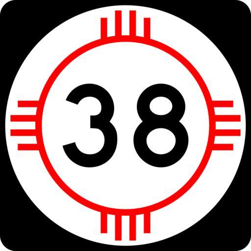 | Keywords: New Mexico 38.svg 600 mm by 600 mm 24 in by 24 in New Mexico state road shield made to the specifications of the http //nmshtd state nm us/upload/images/Plans_Specs_Estimates/Division 20700/701/701 pdf PS E Standard Drawings Uses the Roadgeek 2005 fonts United States law does not permit the copyrighting of typeface designs and the fonts are meant to be copies of a U S Government-produced work anyway self-created using Inkscape and Image US DOT FHWA MUTCD SHS 2004 3-7 M1-6 450x450mm 00 svg 2008-03-26 Mr Matté Own work all rights released Public domain New Mexico State Road shields Shields created by User Mr Matté |