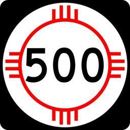 | Keywords: New Mexico 500.svg 24 in x 24 in 600 mm x 600 mm New Mexico State Road shield made to the specifications of the PS E Standard Drawings Uses the Roadgeek 2005 Fonts United States law does not permit the copyrighting of typeface designs and the fonts are meant to be copies of a U S Government-produced work anyway own Carpetmaster101 New Mexico State Road shields |