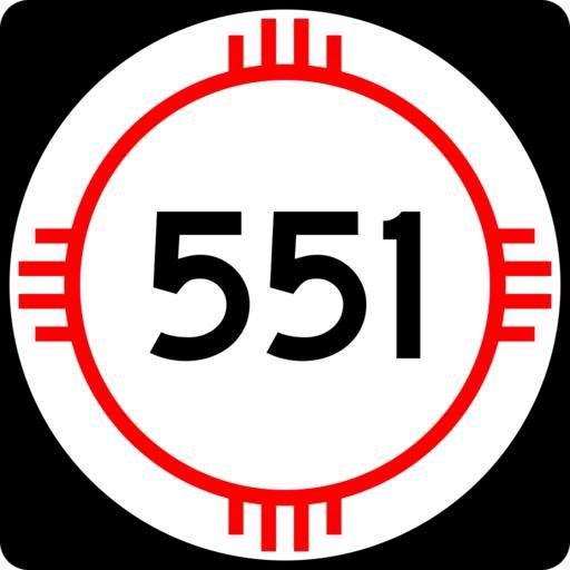 | Keywords: New Mexico 551.svg 750 mm by 750 mm 30 in by 30 in New Mexico state road shield made to the specifications of the http //nmshtd state nm us/upload/images/Plans_Specs_Estimates/Division 20700/701/701 pdf PS E Standard Drawings which specifies a 30 by 30 shield for 3-digit roads Pictures of actual shields were also used for reference Uses the Roadgeek 2005 fonts United States law does not permit the copyrighting of typeface designs and the fonts are meant to be copies of a U S Government-produced work anyway self-created using Inkscape and Image New Mexico 3di svg 2008-03-26 Mr Matté Own work all rights released Public domain New Mexico State Road shields Shields created by User Mr Matté |