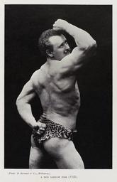 | Keywords: "A New Sandow Pose (VIII)", Eugen Sandow Wellcome L0035270 - restoration.jpg Photograph of Eugen Sandow wearing leopard-skin trunks Entitled A New Sandow Pose VIII Photo taken from Sandow's Magazine of Physical Culture <p>General Collections<br> Keywords Athlete; Physical Education and Training; Athletes; Exercise; Physical Education published 1902 Library reference GC QT1/SAN Photo number L0035270 Full Bibliographic Record http //catalogue wellcomelibrary org/record b1351947 object history exhibition history credit line Wellcome Images File A New Sandow Pose VIII Eugen Sandow Wellcome L0035270 - restoration jpg - Restoration JPEG File A New Sandow Pose VIII Eugen Sandow Wellcome L0035270 - restoration png - Restoration PNG File A New Sandow Pose VIII Eugen Sandow Wellcome L0035270 jpg - Original image JPEG http //wellcomeimages org/indexplus/obf_images/ab/40/89ea0b604f57d1050a06740c22ff jpg Gallery http //wellcomeimages org/indexplus/image/L0035270 html <small> Note Due to a minor error the information in the Wellcome information is at least partially for Pose VII not this one which is Pose VIII Wellcome's copies of the magazine end in 1902 http //catalogue wellcomelibrary org/record b1351947 and the magazine ceased publication in 1907 so this doesn't matter too much as regards copyright status and such but it would be best to use some of the more specific information with caution </small> Related images 300px300px300px300px accession number Assessments 1 Sandow cc-by-4 0 As this is a photograph taken by a Melbourne firm prior to 1955 the underlying photograph is PD-Australia Images uploaded by Fæ Wellcome L0035270 jpg 1902 photographs L0035270 jpg Athletes Exercise Topless male bodybuilders Leopard clothing Eugen Sandow |