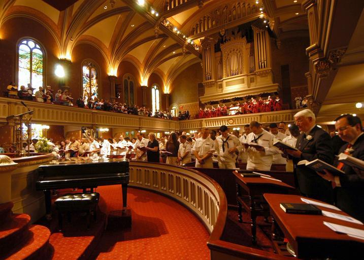 Keywords: new york city church marble collegiate service inside architecture lights beautiful congregation sailors faith religion