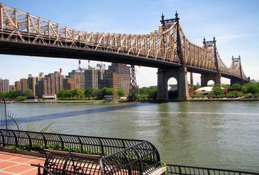 Keywords: new york city ed koch queensborough bridge architecture buildings skyline city cities urban river water reflections shore shoreline sky clouds outside