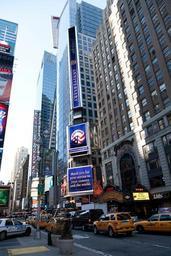 Keywords: new york city manhattan skyscrapers urban downtown skyline street taxis police nypd people architecture signs outside