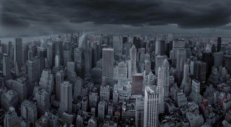 Keywords: new york city skyline city usa panorama skyscraper manhattan building urban romanticism matte painting clouds