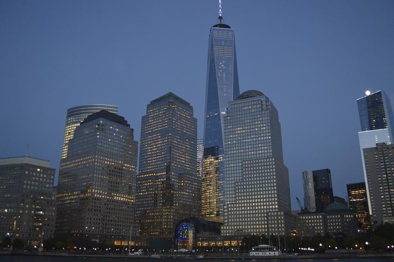 Keywords: new york one world trade center 1 wtc evening new york city skyline dark skyscraper lights night city usa building architecture nyc ny modern