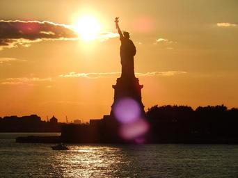 Keywords: new york statue of liberty sunset backlight united states statue water
