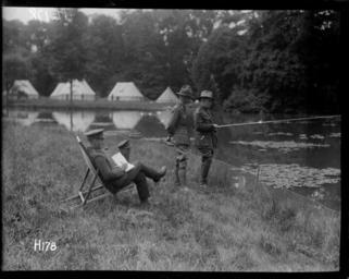 | Keywords: blackandwhite monochrome photo border outdoor black and white New Zealand army officers spending time relaxing in the grounds of the officers' rest house at the Chateau La Motte-au-Bois in France. One officer is sitting in a deck chair writing while another is fishing. Photograph taken 18 July 1917 by Henry Armytage Sanders. Inscriptions: Inscribed - Photographer's title on negative -bottom left: H178. Quantity: 1 b&w original negative(s). Physical Description: Dry plate glass negative 4 x 5 inches New Zealand army officers spending time in the surroundings of the officers' rest house. Royal New Zealand Returned and Services' Association :New Zealand official negatives, World War 1914-1918. Ref: 1/2-012878-G. Alexander Turnbull Library, Wellington, New Zealand. natlib.govt.nz/records/22363934 New Zealand army officers spending time relaxing in the grounds of the officers' rest house at the Chateau La Motte-au-Bois in France. One officer is sitting in a deck chair writing while another is fishing. Photograph taken 18 July 1917 by Henry Armytage Sanders. Inscriptions: Inscribed - Photographer's title on negative -bottom left: H178. Quantity: 1 b&w original negative(s). Physical Description: Dry plate glass negative 4 x 5 inches New Zealand army officers spending time in the surroundings of the officers' rest house. Royal New Zealand Returned and Services' Association :New Zealand official negatives, World War 1914-1918. Ref: 1/2-012878-G. Alexander Turnbull Library, Wellington, New Zealand. natlib.govt.nz/records/22363934 |