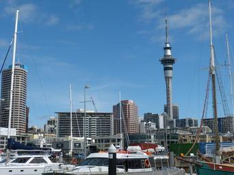 Keywords: new zealand auckland skyline skyscraper city architecture homes port sea big city holiday ship booot sailing vessel skytower tower