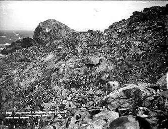 | Keywords: New Zealand, Bounty Islands, 1888 (4).jpg nl Salvins albatrossen Thalassarche salvini en Grote Kuifpinguïns Eudyptes sclateri op de Bounty-eilanden Nieuw Zeeland en Salvin's Albatrosses Thalassarche salvini and Erect Crested Penguïns Eudyptes sclateri on the Bounty Islands New Zealand The picture is a black and white gelatin glass negative from 1888 Online collections of the Museum of New Zealand Te Papa Tongarewa at http //collections tepapa govt nz/ William Dougall photographer 1888 The author William Dougall died around 1920 which is more than 70 years ago <br>Also the website of the Museum of New Zealand from which this picture was taken explicitly states that this photo has No known copyright restrictions 47 45 4 37 S 179 1 25 54 E region NZ Bounty Islands Thalassarche salvini Eudyptes sclateri Bird colonies Gelatin dry plate process PD-old-70-1923 |
