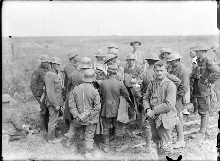 MAKE A MEME View Large Image New Zealand soldiers examine the papers of German prisoners of war during World War I. A bare-headed prisoner stands in the foreground. Photograph taken at Grevillers, France 24 August 1918 by Henry Armytage Sanders. Inscriptions: Inscribed ...