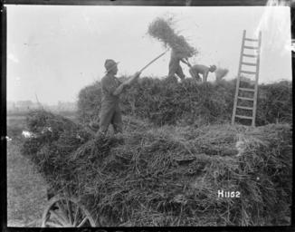 | Keywords: blackandwhite monochrome photo border outdoor black and white New Zealand soldiers with pitch forks pile hay onto a haystack to help local French farmers with the harvest in World War I. Photograph taken 25 August 1917 by Henry Armytage Sanders. Inscriptions: Inscribed - Photographer's title on negative -bottom right: H1162. Quantity: 1 b&w original negative(s). Physical Description: Dry plate glass negative 4 x 5 inches New Zealand soldiers helping with the local harvest in World War I. Royal New Zealand Returned and Services' Association :New Zealand official negatives, World War 1914-1918. Ref: 1/2-013711-G. Alexander Turnbull Library, Wellington, New Zealand. natlib.govt.nz/records/22808379 New Zealand soldiers with pitch forks pile hay onto a haystack to help local French farmers with the harvest in World War I. Photograph taken 25 August 1917 by Henry Armytage Sanders. Inscriptions: Inscribed - Photographer's title on negative -bottom right: H1162. Quantity: 1 b&w original negative(s). Physical Description: Dry plate glass negative 4 x 5 inches New Zealand soldiers helping with the local harvest in World War I. Royal New Zealand Returned and Services' Association :New Zealand official negatives, World War 1914-1918. Ref: 1/2-013711-G. Alexander Turnbull Library, Wellington, New Zealand. natlib.govt.nz/records/22808379 |
