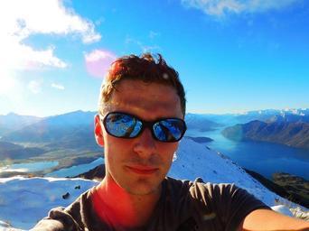 Keywords: new zealand young man hiker trekker mountains sunny adventure trekking hiking freedom adventurer