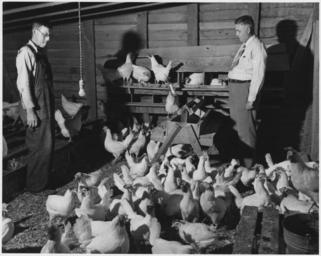 | Keywords: Newberry County, South Carolina. Flock of 2 and 3 year old hens used as breeders. A flock of 300 t . . . - NARA - 522682.jpg Scope and content Full caption reads as follows Newberry County South Carolina Flock of 2 and 3 year old hens used as breeders A flock of 300 to 400 kept for this purpose This flock has been culled and blood tested since the hens were pullets J C Epting Jr Little Mountain South Carolina Mr Epting was the first to produce poultry commercially in his community This poultry work was begun in cooperation with the Clemson College Extension Service in 1925 There are now fully 20 000 commercial hens kept within a radius of a few miles of this farm General notes 522682 Local identifier 83-G-44562 Department of Agriculture Bureau of Agricultural Economics Division of Economic Information ca 1922 - ca 1953 Still Picture Records Section Special Media Archives Services Division NWCS-S National Archives at College Park 8601 Adelphi Road College Park MD 20740-6001 04/1941 Record group Record Group 83 Records of the Bureau of Agricultural Economics 1876 - 1959 Record group ARC 412 Photographic Prints Documenting Programs and Activities of the Bureau of Agricultural Economics and Predecessor Agencies compiled ca 1922 - ca 1947 documenting the period ca 1911 - ca 1947 Series ARC 521048 File unit File unit ARC Variant control numbers NAIL Control Number NWDNS-83-G-44562 Other versions <gallery> File Newberry_County _South_Carolina _Flock_of_2_and_3_year_old_hens_used_as_breeders _A_flock_of_300_t_ _ _ _-_NARA_-_522682 tif tif File Newberry_County _South_Carolina _Flock_of_2_and_3_year_old_hens_used_as_breeders _A_flock_of_300_t_ _ _ _-_NARA_-_522682 jpg jpg </gallery> NARA-cooperation PD-USGov 1941 in Newberry County Chicken coops |