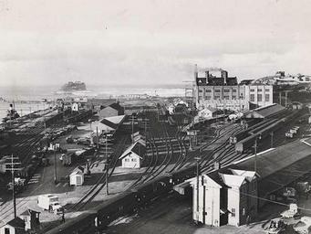 | Keywords: archives state records nsw staterecordsnsw newsouthwales blackandwhite railway station railwaystation hunter railway yard railwayyard harbour newcastle regional geotagged geo:lat=-32.9267 geo:lat=329267 geo:lon=151.7839 geo:lon=1517839 end platform carriages endplatformcarriages outdoor waterfront water black and white Title: Newcastle goods yard Dated: c. 31/12/1930 Digital ID: 17420_a014_a014000676 Rights: www.records.nsw.gov.au/about-us/rights-and-permissions We'd love to hear from you if you use our photos. Many other photos in our collection are available to view and browse on our website using Photo Investigator. Title: Newcastle goods yard Dated: c. 31/12/1930 Digital ID: 17420_a014_a014000676 Rights: www.records.nsw.gov.au/about-us/rights-and-permissions We'd love to hear from you if you use our photos. Many other photos in our collection are available to view and browse on our website using Photo Investigator. |
