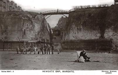 | Keywords: Newgate Gap, Martgate Kent England 1907 or before.jpg Margate Kent England This original bridge shown built in 1861 was replaced by a new iron bridge in 1907 2016-01-10 16 25 37 Vintage postcard postally franked 1907 Photographer not identified Publisher Davidson Brothers London; publishers of postcards comics greetings cards and artwork reproductions from 1901 to their winding-up in 1911 other versions PD-old-70-1923 Beaches of Kent Bridges in Kent Cliffs of Kent Deckchairs in the United Kingdom Donkey rides Margate Postcards of Kent Uploaded with UploadWizard |