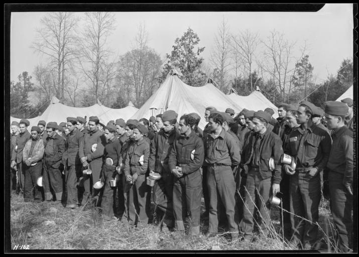 | Keywords: nara:arcid=532780 u.s. national archives usnationalarchives lewis hine lewishine blackandwhite monochrome photo border outdoor black and white Original Caption: Newly-arrived replacements at CCC Camp, TVA #22, near Esco, Tennessee, lined up before their first meal in camp. The boys arrived at New Tazewell on November 17, 1933, in day coaches form New York, tired and hungry, but eager for their new life. For many of these boys, this was their first time away from home, November 1933 U.S. National Archives’ Local Identifier: 142-H-162 Photographer: Hine, Lewis Subjects: New Deal, 1933-1939 Rural areas Tennessee (United States, North and Central America) state Water projects Persistent URL: research.archives.gov/description/532780 Repository: Still Picture Records Section, Special Media Archives Services Division (NWCS-S), National Archives at College Park, 8601 Adelphi Road, College Park, MD, 20740-6001. For information about ordering reproductions of photographs held by the Still Picture Unit, visit: www.archives.gov/research/order/still-pictures.html Reproductions may be ordered via an independent vendor. NARA maintains a list of vendors at www.archives.gov/research/order/vendors-photos-maps-dc.html Access Restrictions: Unrestricted Use Restrictions: Unrestricted Original Caption: Newly-arrived replacements at CCC Camp, TVA #22, near Esco, Tennessee, lined up before their first meal in camp. The boys arrived at New Tazewell on November 17, 1933, in day coaches form New York, tired and hungry, but eager for their new life. For many of these boys, this was their first time away from home, November 1933 U.S. National Archives’ Local Identifier: 142-H-162 Photographer: Hine, Lewis Subjects: New Deal, 1933-1939 Rural areas Tennessee (United States, North and Central America) state Water projects Persistent URL: research.archives.gov/description/532780 Repository: Still Picture Records Section, Special Media Archives Services Division (NWCS-S), National Archives at College Park, 8601 Adelphi Road, College Park, MD, 20740-6001. For information about ordering reproductions of photographs held by the Still Picture Unit, visit: www.archives.gov/research/order/still-pictures.html Reproductions may be ordered via an independent vendor. NARA maintains a list of vendors at www.archives.gov/research/order/vendors-photos-maps-dc.html Access Restrictions: Unrestricted Use Restrictions: Unrestricted |